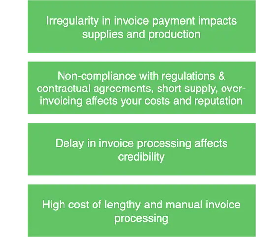The application enforces compliance with organizational policies, contractual agreement, legal requirements, and industry regulations. It helps you meet auditing and regulatory standards. The application ensures that only valid and approved invoices are processed for payment.